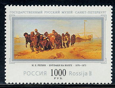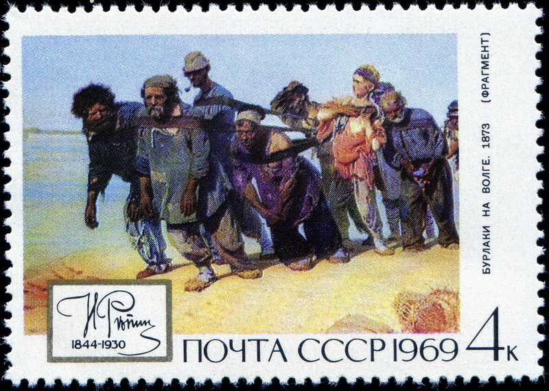 「伏爾加河上的縴夫」(Burlaki na Volge)是列賓於1870~1873年創作的一幅油畫,也是他的成名作,現實主義繪畫的傑出代表作。描繪了11名衣衫襤褸的縴夫猶如一组雕刻群像,在烈日酷暑下,漫長荒蕪的沙灘上,拖着伏爾加河畔的貨船,步履沉重的情景,這幅尺寸不大的畫,極具表現力和震撼力,具有史詩般的悲壯,是列賓不朽的名畫。