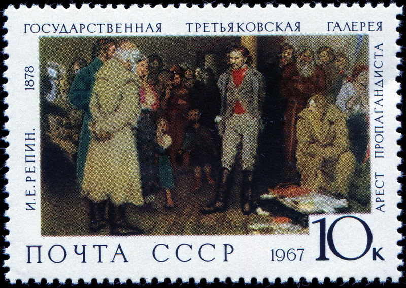 這是列賓用了四年時間創作,描繪一位被長期流放和苦役的革命者突然回家的一刹那間,在他家裡所引起的驚愕反應。一個面容瘦削、滿臉鬍鬚的中年男子走進房裡,身上還穿著衣。門口的女傭把他看成「陌生人」,妻子吃驚地站起來。畫面還有年邁的母親和兩個稚齡的兒女。這幅畫因描寫革命者的現實,難以通過沙皇的檢查機關,幾經波折才得以展出。