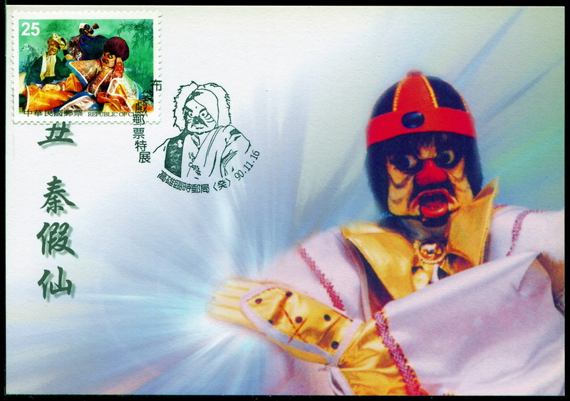 丑:以「霹靂金光」中之「秦假仙」為代表,以沒有鼻子的造型,專靠嘴巴吃飯,超級跑腿王,表現甘草人物在戲劇中擔任潤滑劑的特質。構圖表現秦假仙與業途零、蔭屍人等3個 丑角一搭一唱之幽默效果。